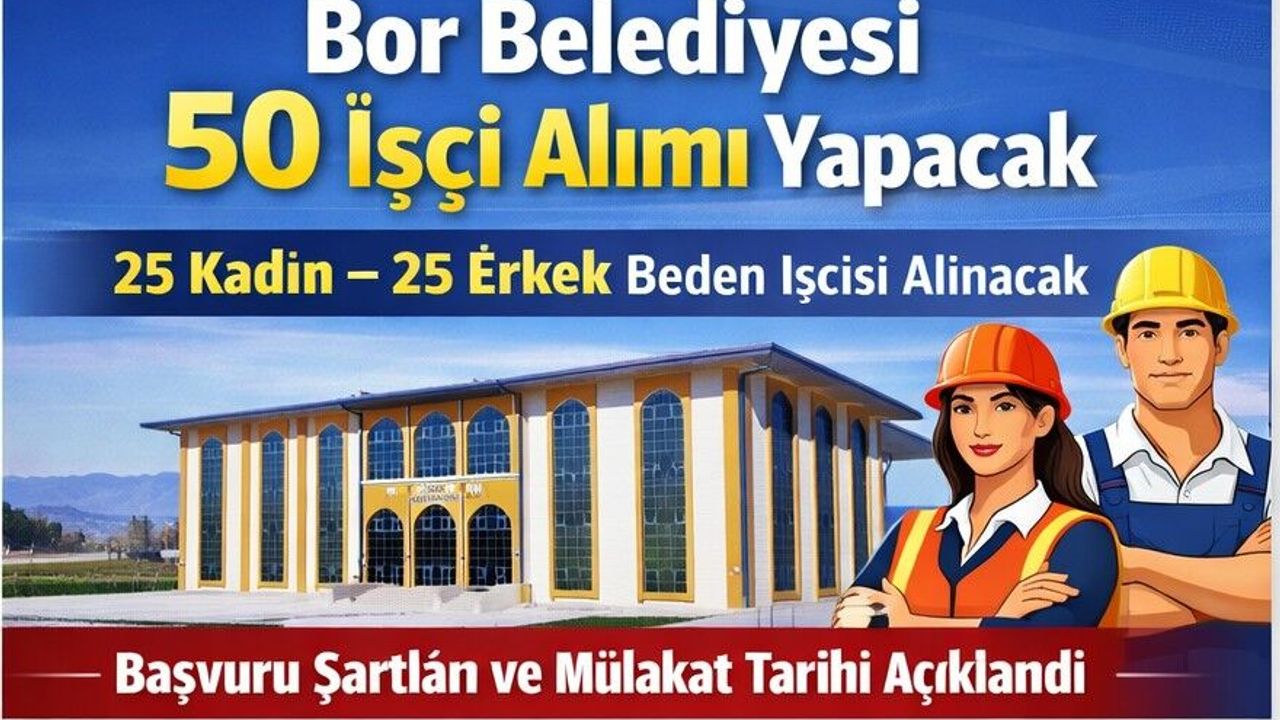 Bor Belediyesi Personel Limited Şirketi, geçici statüde çalıştırılmak üzere 50 beden işçisi alımı gerçekleştireceğini duyurdu. Alımların 25 kadın ve 25 erkek olmak üzere yapılacağı belirtilirken başvuru şartları ve mülakat tarihi de ilan edildi.