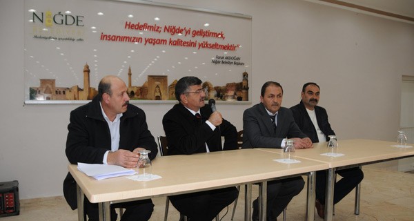 Niğde Belediye Başkanı Faruk Akdoğan Hüdavent Hatum Sosyal Tesisinde düzenlenen toplantıda Marangoz ve Mobilyacılar ile Demirci ve Oto tamirci esnafıyla oluşturulan yapı kooperatifi için bilgilendirme toplantısında bir araya geldi. Toplantıya NASKOP Yapı Kooperatifi Başkanı Cavit Güneş, Demirciler ve Oto tamircileri Başkanı Turgut Taygur ve çok sayıda marangoz ve sanayi esnafı katıldı.