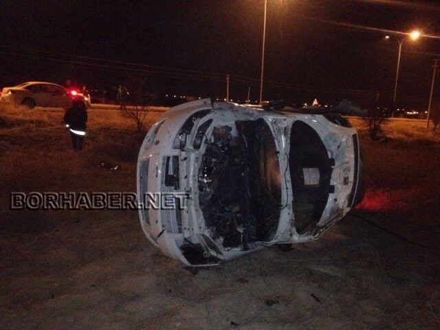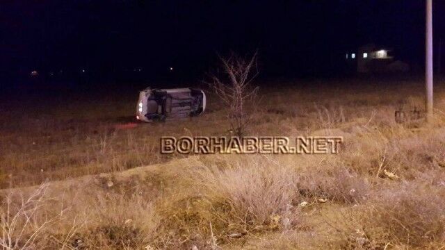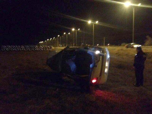 Geriden gelen 51 HV 599 plakalı bir başka araç yol üzerinde duran köpeğin cesedine çarpmamak için direksiyon kırdı. Aniden direksiyon kıran araç 4-5 takla atarak yol kenarındaki tarlada durabildi.