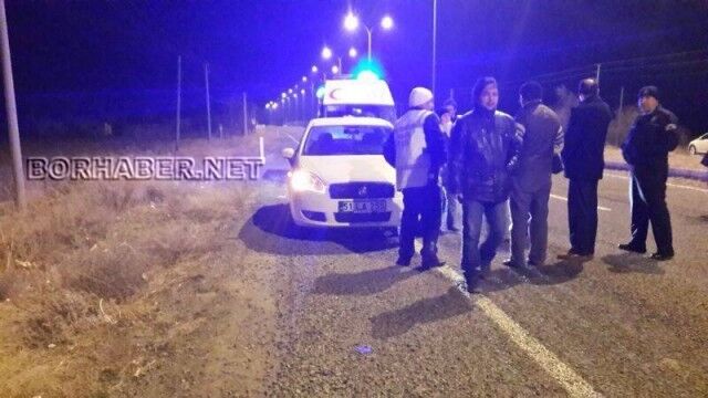 Edindiğimiz bilgiye göre ; Bor – Altunhisar yolu üzerinde Pınarbaşı mevki yakınlarında Altunhisar yönünden Bor İlçesine doğru seyir halindeki 51 LA 255 plakalı özel otomobilin önüne köpek çıktı. Köpeğe çarpan sürücü aracında hasar olup olmadığını görmek için yolun sağında durdu.