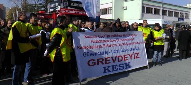 KESK Niğde de 1 günlük grev yaptı öğle arası Niğde hükümet meydanında bir basın açıklaması yapıldı.
