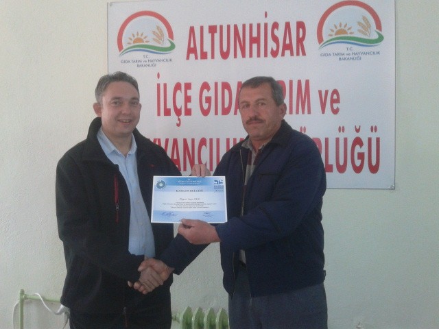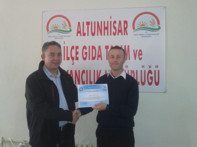Altunhisar İlçe Gıda Tarım ve Hayvancılık Müdürü İhsan İnal, kursiyerlere belge töreninde yaptığı açıklamada; Altunhisar’da Müdürlüğümüz tarafından hazırlanan projemiz Ahiler kalkınma Ajansı tarafından desteklendi. Altunhisar ilçemizde çiftçi ve teknik personelden oluşan 25 kişilik bir gruba akademisyenler tarafından 5 gün boyunca yaklaşık 30 saatlik Organik Çilek Yetiştiriciliği konularında eğitimler verildi. Kursa katılan kursiyerlere arazi uygulamalı kontrolleri önümüzdeki günlerde belirlenecek program çerçevesinde il dışında değişik şehirlerde uygulamalı olarak yapılacaktır. Bu projemizle Niğde İl Gıda Tarım ve Hayvancılık Müdürlüğü ve Altunhisar Kaymakamlığınca çilek yetiştiricilerine uygulanacak projelerin alt yapısı oluşturulacaktır. Altunhisar Kaymakamlığımız ve Kursumuzun açılmasında, tamamlanmasında destek veren ve tüm emeği geçenleri kutluyor. Siz kursiyerlere de önümüzdeki ekim döneminde bereketli zirai kazançlar diliyorum.Hayırlı ve uğurlu olsun.Dedi.