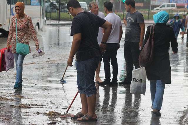 Niğde’de yaklaşık bir saat süren sağanak yağış sonrası şehrin bir çok yerinde ev ve işlerini su bastı.