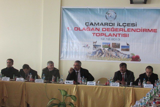 Vali Kılıç, Çamardı Kaymakamı Karaosmanoğlu'ndan ilçede yapılan proje ve çalışmalar hakkında brifing aldı, 2014 yılında yapılacak çalışmalar hakkında görüş alışverişinde bulundu. Kılıç, yatırımları yerinde koordine ederek hizmet ihtiyaçlarını tespit etmek üzere bir program çerçevesinde uygulamak için değerlendirme toplantısını düzenlediklerini söyledi.
