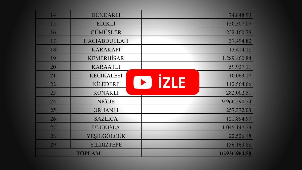 Sayıştay raporunda Niğde genelindeki 29 İl, İlçe ve belde belediyelerinin borçları çizelge yapılarak yayınlanmış. Aşağıda inceleyin.