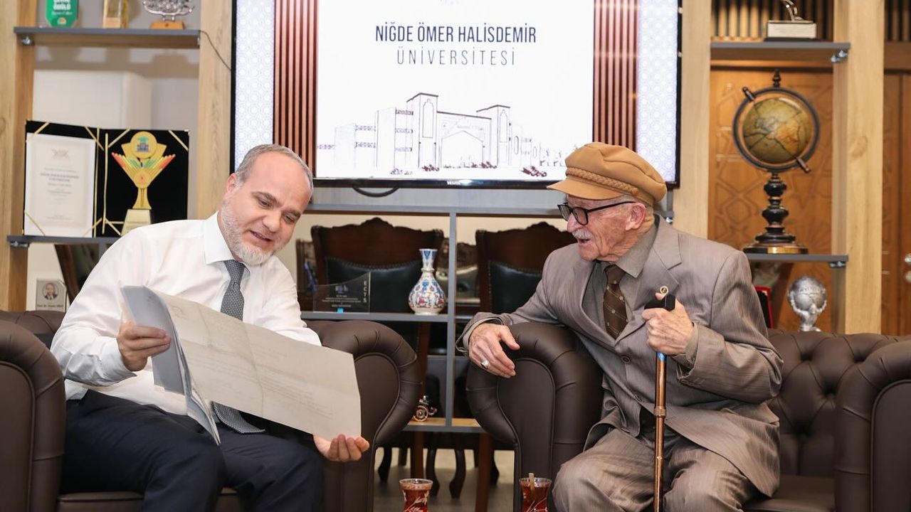 Niğde’de yaşayan 89 yaşındaki Abdürrahim Özgün, Makine Mühendisliği bölümünde eğitim görmek istediğini belirterek Ömer Halisdemir Üniversitesi Rektörü Prof. Dr. Hasan Uslu’yu ziyaret etti.