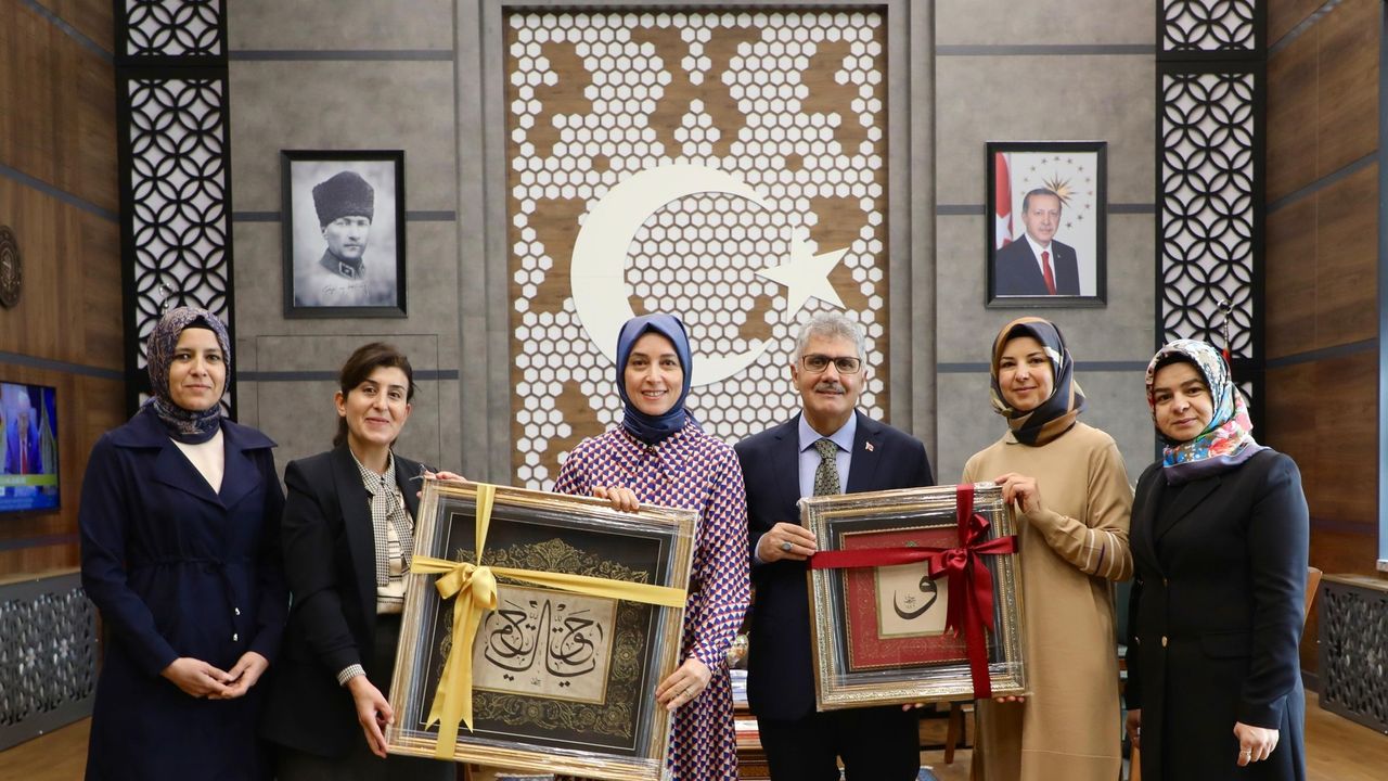Vali Cahit Çelik, nazik ziyaret ve anlamlı hediye için Aynur Demirtaş’a, Filiz Aslan’a ve kursiyerlere teşekkür ederek, çalışmalarında başarılar diledi.