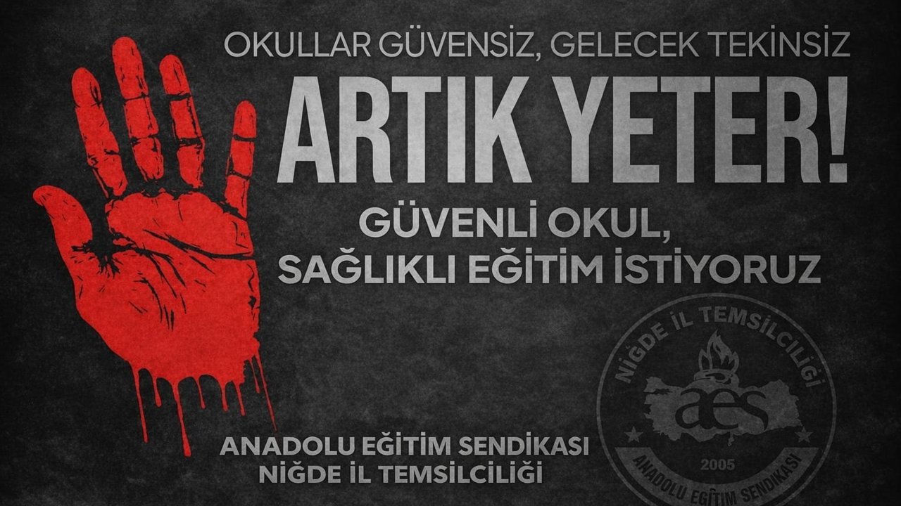 Anadolu Eğitim Sendikası Niğde İl Temsilciliği, okullarda artan şiddet olaylarına ilişkin yaptığı basın açıklamasında, yaşananların artık tehlikeli bir boyuta ulaştığını belirterek acil önlem çağrısında bulundu.