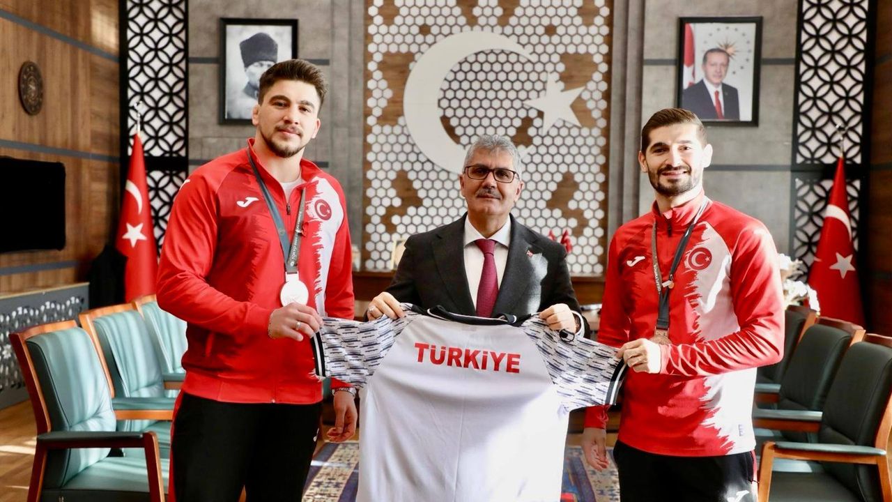 Ulusal ve uluslararası alanda elde ettikleri başarılarla Türk güreşinin öne çıkan isimleri arasında yer alan Niğdeli millî sporcular Ahmet Talha Kacur ve Kadir Kuş, kazandıkları bronz madalyaların ardından Niğde Valisi Cahit Çelik’i makamında ziyaret etti.