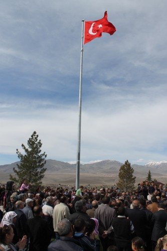 Bazıları şehitlerimiz üzerinden siyaset yapıyor. Sevgili hemşerilerim burada şehitlerimize ağlamayan, üzülmeyen var mı? Böyle bir şey olabilir mi? Allah ruhlarını şaad etsin. Mekanları Cennet olsun”dedi.