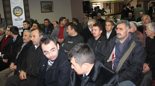 Bor Esnaf Sanatkârlar Kredi ve Kefalet Kooperatifi Genel Kurulunda gündem dışı söz alan Bor Belediye Başkanı Sıtkı Erat; “Küçük bir ilçede böyle bir kooperatifi yaşatmak ciddi bir özveri gerektiriyor. Bu özveriyi gösteren değerli büyüklerimi bu hepsini saygılarımla karşılıyorum. Tabi ki baktığınız zaman dünya kaynıyor,Hemen yanı başımızda Suriye’yi Mısır’ı görüyoruz.Cenabı-Allah birliğimizi dirliğimizi bozmasın.Hep beraber mutlu aydınlık günler yaşarız.Hep beraber o mutlu günlerde beraber oluruz. Önümüzde bir yerel seçim var. Bu seçiminler de yaşanacak demokrasinin gereği, bu seçimi yaşayacağız. saygı sevgi içinde bu seçimi tamamlayacağız. Kazananı tebrik edeceğiz. Dirliğimiz birliğimiz bozulmasın. Cenabı Allah berberliğimizi birliğimizi bozduğunda hiçbir şeyin anlamı olmayacağını düşünüyorum. Bu birlik beraberliğin Bor’da olduğunu düşünüyorum. Yine TESKOMB Yönetim Kurulu Üyesi ve Konya Bölge Birliği Başkanı Mehmet Baybağan başkanımız yeni görevinde başarılar diliyorum. Kendisi bildim bileli her zaman Bor Kooperatifine hakikaten çok büyük emeğini veren, her toplantımıza katılan her zaman yanımızda olan birisi yeni görevinde de başarılar.diliyorum.Bu vesileyle kooperatifimizin esnafımıza,ilçemize ve ülkemize hayırlara vesile olmasını diliyorum.Dedi.