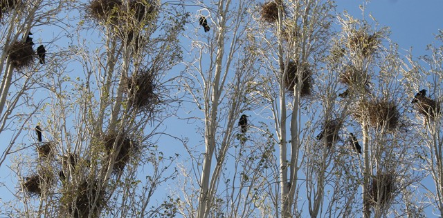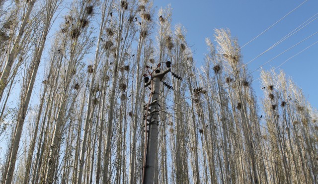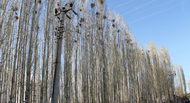 Bor İlçesi Fatih Mahallesinde tren yolu yanında bulunan kavaklar üzerine yuva yapan kargalar yaklaşık 4-5 yıldır yaz aylarını burada yaptıkları yuvalarda geçiriyor.