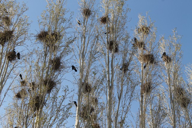 Akşam saatlerinde yuvalarına dönen kargalar çıkardıkları sesleri ile sokağa ayrı bir hava katıyor. Kavak ağaçlarının dallarını gagaları ile kırarak yuva yapan kargalar bu yuvalara yavruluyorlar.