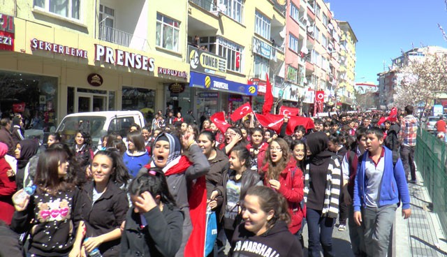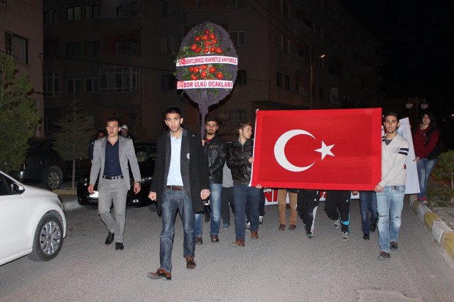 Bugün (Cuma) öğle arasında yaklaşık 300 kadar lise öğrencisi Niğde İmam Hatip meydanından başlayarak Derbent Şehitliğine kadar yürüdü. Hükümet meydanında İstiklal Marşı okuyan gençler, Bor Caddesi üzerinden Şehitliğe yürüdüler. Burada da İstiklal Marşı okuyan öğrenciler daha sonra dağıldı.