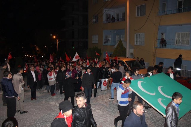 Aynı gün akşam ise Bor Ülkü Ocakları tarafından bir yürüyüş tertip edildi. Haydar Özalp Caddesinden başlayan yürüyüş İstasyon Caddesindeki MHP’nin seçim bürosunda son buldu. Burada MHP Bor Belediye Başkan Adayı Fahrettin Özalp katılanlara teşekkür konuşması yaptı.