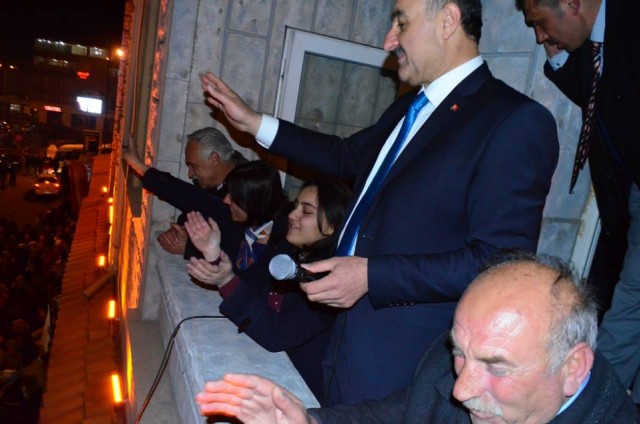 İzdiham içinde, büyük sevgi gösterileri içinde, Bor Belediye binasına giren Sıtkı Erat, Borlulara “Balkon Konuşması” yaptı. Balkon konuşması sırasında sık sık sloganlarla sözü kesilen Başkan Erat’ın konuşması sırasında havai fişekler atıldı.