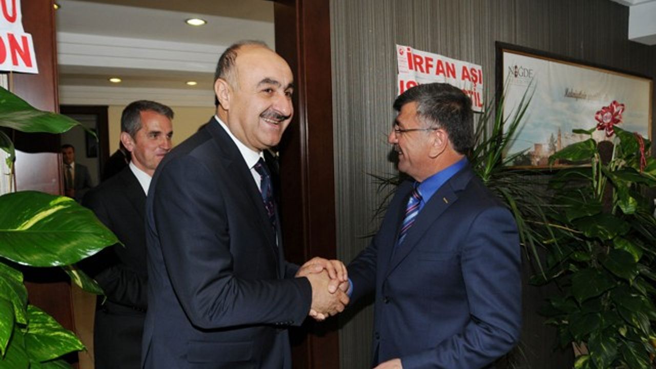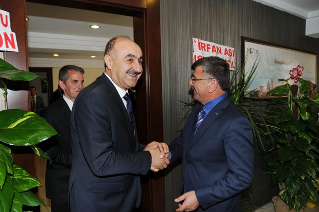 Niğde Belediye Başkanı Faruk Akdoğan'ı ziyaret eden Bor Belediye Başkanı Sıtkı Erat Niğde Belediye Başkanı Faruk Akdoğan'a görevinde başarılar dileyerek hayırlı olsun temennisinde bulundu.