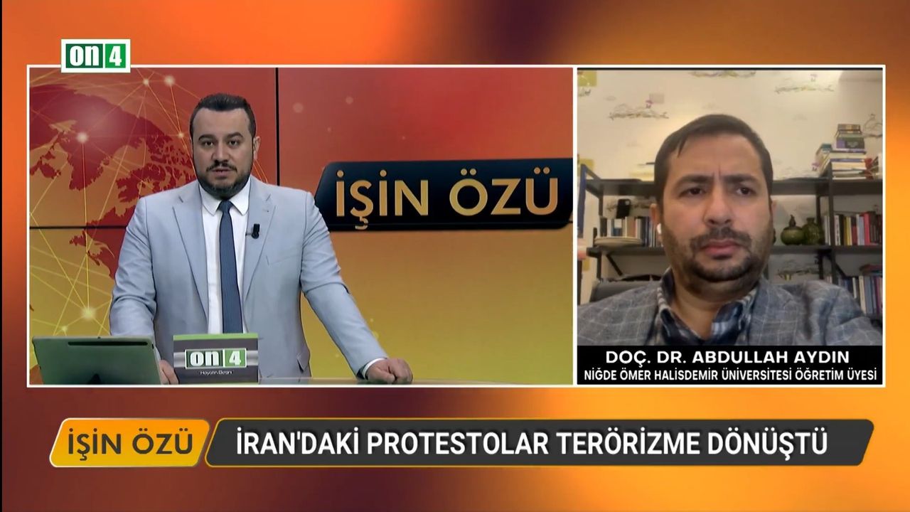 On4. Tv'nin sunum başlığı ise "İran'da haklı gerekçelerle başlayan protestolar nasıl Amerika ve İsrail'in etkisiyle kaosa dönüştü? Niğde Ömer Halisdemir Üniversitesi Öğretim Üyesi Doç. Dr. Abdullah Aydın cevaplıyor" şeklindeydi.