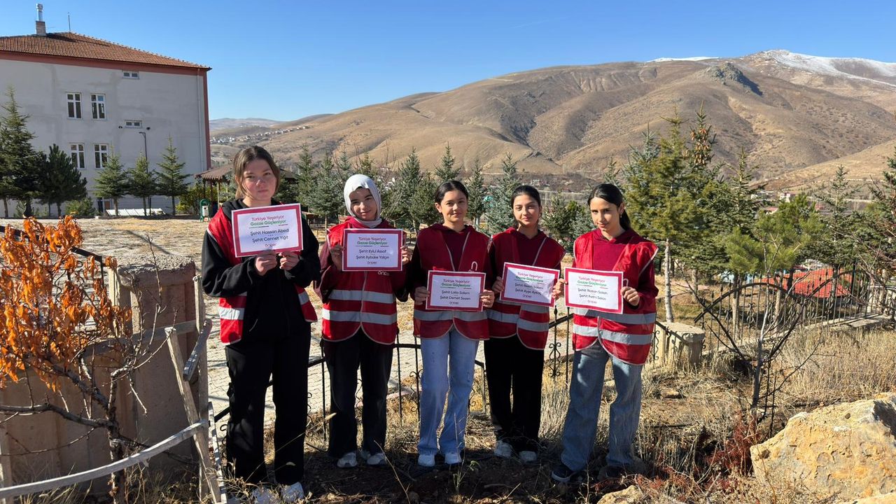 Etkinliğe katılan öğrenciler, şehitlerin isimlerini yaşatmak için toprakla buluşturdukları her bir fidanla hem çevreye katkı sundu hem de anlamlı bir sosyal sorumluluk çalışmasına imza attı.