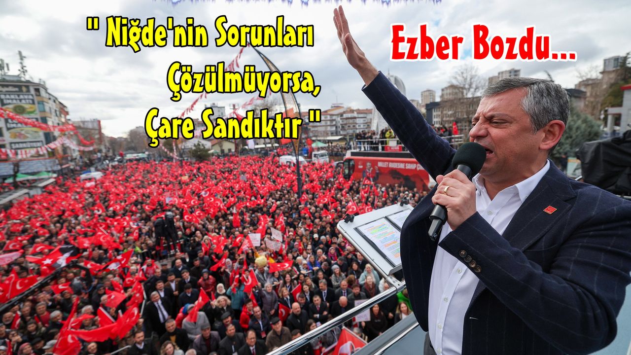 “Deprem bölgesinde ziyaretimizi bitirdik. Ankara’ya gitmeden koştuk, Niğde’ye geldik. ‘Yağmur var’ dediler. ‘Şubatın başı’ dediler. ‘Hava soğuk olur, kimse gelmez’ dediler. Dedik ki ‘Bu havada, bu tarihte miting olmaz. Ama biz Niğde’ye mitinge değil; Niğde’yi duymaya, Niğde’yi dinlemeye, Niğde’ye seslenmeye, Niğde’de bütün adaletsizlikleri konuşmaya, Niğde’nin vicdanına sığınmaya, 87’nci kez adalet için eylem yapmaya gidiyoruz.’ Bu meydandan taşanlara, bariyerlerin dışında kalanlara, miting meydanının dışında kalıp içeriye giremeyenlere, bu meydanı tarihi bir kalabalıkla dolduranlara helal olsun, hepinize selam olsun. Biz demokrasi fikrinin sahibi insanlarız, siyasetçileriz. Demokrasi fikrine inanan bir siyasi partiyiz. Niğde’de çok uzun yıllar siyasette istediğimiz noktaya gelemedik. Yıllardır Niğde Belediyesi’ni alamadık. Ama asla Niğde’nin tercihine saygısızlık yapmadık. Onları hor görmedik. ‘Bir bildikleri var’ dedik, ‘Doğrusunu millet bilir, millet yetkiyi verir’ dedik. Seçene ve seçilene saygı duyduk. Buradan Niğde seçimlerini kazanan Adalet ve Kalkınma Partili belediye başkanını da belediye meclis üyelerini de tüm belediye meclisi ile birlikte kutluyoruz. ‘Niğde için çalışsınlar, elimizden gelen desteği biz de vereceğiz’ diyoruz. Çünkü demokrasi seçimi kazandığın gün ne yaptığınla ölçülmez. Kazanınca davul - zurna, kazanınca millete iltifat, kazanınca milli irade; kaybedince milletin seçtiğine itiraz, millete itiraz, darbe. İşte bunlar olmaz. Buradan Erdoğan’a sesleniyorum. Niğde kimsenin kalesi değildir, Niğde bundan sonra milletin kalesidir. Niğde ne derse o olur. Millet ne derse o olur. Bu millet devletini sever. Devlet çağırır, askere gider. Eline kına yakar, evladını askere yollar. Bu milletin şehidi olur, ‘Vatan sağ olsun’ der. Bu millet vergi istersin verir, çağırırsın gelir. Ama bu milletin karşısına devleti dikmeyeceksin. Eğer milletle devlet yarışırsa, emin ol ki şuna sadece ve sadece millet kazanır. Milletin dediği olur. Valilerden il başkanı yapmaya çalışanlara, kaymakamı ilçe başkanı gibi görmek isteyenlere, devletin memurunu partiye memur kılmaya çalışanlara söylüyorum. Bu devletin ayarlarıyla oynuyorsunuz. Bu milletin sinirleriyle oynuyorsunuz. Bu millet yetkiyi verdiğinde kullanıyorsunuz. Vermediğinde hazımsızlık ediyorsunuz. Bu millet son sözü söyleyecek. Bu millet 100 yıl önce ilk sözü de söyledi, son sözü de söyledi. Niğde ne diyorsa onun dediği olacak.”