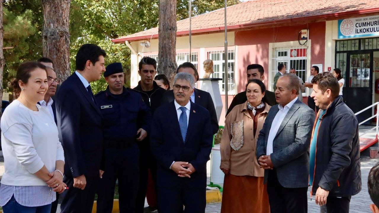 Tarihi alanlardaki çalışmalar hakkında bilgi alan Vali Çelik ve beraberindeki heyet, daha sonra Kemerhisar Cumhuriyet İlkokulu ile Tyana Kadın Kooperatifi’ni ziyaret etti.