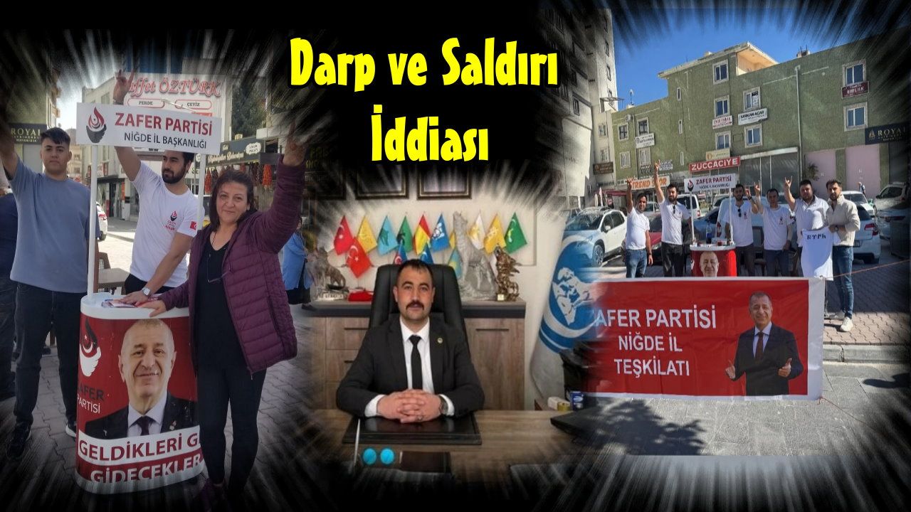 Zafer Partisi Niğde İl Başkanlığı, Niğde Cumhuriyet Meydanı'nda kurdukları parti tanıtım standına Niğde Ülkü Ocakları Başkanı Naci Babacan tarafından saldırı düzenlendiğini, bir parti görevlisinin darp edildiğini ve tehditler savrulduğunu iddia ederek savcılığa suç duyurusunda bulundu.